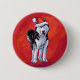 Husky in Weihnachtsmannmütze auf Rot Button