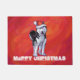Husky in Weihnachtsmannmütze auf Rot Fußmatte