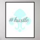 Himmelsblaue Lilie mit hellgrauem Overlay-Schriftsatz, Hashtag "Hustle". Das Aufrufen von Social Media Memes. Weißer Hintergrund mit fett schwarzem Rahmen, sieht gut aus mit oder ohne Rahmen.