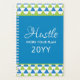 Dieses Design zeichnet sich durch ein modernes geometrisches Muster von grünen und blauen Dreiecken auf weißem Hintergrund aus. Der beliebte typografische Text "Hustle work your plan 2019" ist in weißer Schrift geschrieben.