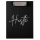 This minimalist black and white “Hustle” script clipboard is designed for entrepreneurs, students, creators, and professionals who are serious about their goals.