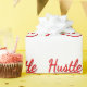 Das Wort "hustle" in rot mit Fallschatten in schwarz. Originelles Design.