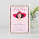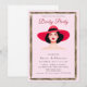 Diese Einladung mit einer anspruchsvollen Modeillustration einer Frau, die einen klassischen schwarzen Hut mit breiter Krempe trägt, ist perfekt für Derby-Partys, Ladies' Day-Feiern, Gartenveranstaltungen, Pferderennen-inspirierte Zusammenkünfte und hochkarätige gesellschaftliche Anlässe.