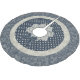 Hübscher Weihnachtsbaumrock in Hütte-schicke Grafiken von blauen und Elfenbeindrucken und Polka-Punkte, gemacht in einem runden Patchwork-Look. Die Grafik der Elfenbeinsäule, die das Loch umgibt, in der Mitte, und ein blauer Satin-Look verziert die obere Front.