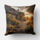 Zwei wunderschöne Hütten bei Sonnenuntergang, eine auf jeder Seite des Kissens, wunderschöne malerische Szenen, die überall in Ihrer Zuhause gut aussehen. Generativer Inhalt.