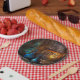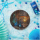 Hütte durch Lampenlicht rustikale Szene braun blau Pappteller