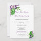 Eine Hochzeitseinladung in einem Hütte Gartenthema. Ein Blumenarrangement mit einem Single Lavendel Aquarell Blume und Grün. Eine naturlich inspirierte Erklärung für Ihren besonderen Tag. Auf der Rückseite ist ein Kranz, der mit Initialen angepasst werden kann.