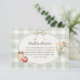 Die Duschkarte mit grünem Aquarellgingham zeigt ein ovales Rahmendesign mit einem niedlichen grünen Bogen, einem Bouquet aus der Wildblume, einem Honigglas und einem Apfel. Ideal für einen "Fresh off the market" oder Hütte Brautparty Thema.