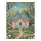 Dieses skurrile Kunstwerk zeigt eine zauberhafte rosa Hütte inmitten eines üppigen, bezaubernden Waldes. Die Hütte mit ihrem schieferblauen Dach und der einladenden aquamarinen Türe ist umgeben von einer Fülle von bunten Wildblumen in einer sanften, Frühlingspalette. Ein kurvenreicher Steinweg führt den Betrachter zur Haustür, während die Szene von den umschlungenen Zweigen zweier großer stilisierter Bäume gerahmt wird. Der Himmel ist ein ruhiger, aquamariner Himmel mit sanftem Vollmond und leichten Wolken, der die magische, Storybook-Atmosphäre noch verstärkt. Dieses Stück erinnert an ein Gefühl von Ruhe, Nostalgie und rustikalem Charme.