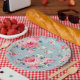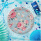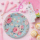 Hütte Rosa Rosen auf blauem Hintergrund Pappteller