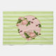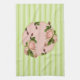 Diese Hütte Rose Küchentücher mit hellrosa Rose auf grünen und weißen Streifen für ein Shabby Chic Aussehen.