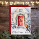 Diese malerische Weihnachtskarte zeigt einen fröhlichen Weihnachtsgrüßen und eine Aquarellbild einer gemütlichen Hütte mit festlicher roter Tür, die mit einem üppigen Kranz und einer Garlandschaft verziert ist. Ein reizendes Fahrrad mit einem Korb befindet sich in der Nähe und trägt zur idyllischen Winterlandschaft bei. Rote Farbe auf der Rückseite mit individualisierbaren Feiertagsgrüßen und Unterschrift auf der Rückseite.