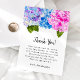 Elegante und schicke Wasserfarbe Hydrangea Dankeschön Karte für Blumendesign Babydusche. Abbildung der Hydrangeas in Rosa, Blau und oben lila. Der Standardtext dankt dem Gast für sein Kommen und Feiern bei der Babydusche und für seine Geschenke. Sie können unten Ihren Familiennamen hinzufügen.