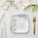 Elegante florale Brautparty-Papierplatten mit einer pastellblauen, zarten Hortensien-Blumenanordnung und eleganter Typografie.