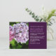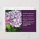 De belles hydrangées violettes et vibrantes ornent cette faire-part de mariage à deux côtés. Customisez à votre goût en sélectionnant différentes couleurs arrière - plans ou couleurs de police. Idéal pour un mariage de printemps ou d'été ou une destination tropicale ou insulaire. Voir nos autres produits dans notre Mariage - Collection Hydrangea.