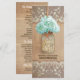 De beaux programmes de mariage rustique avec bocal de mason tenant hydrangea. Arrière - plan - textures de bois ancien décorées de dentelle d'ivoire. Programmes de mariage parfaits pour mariage de grange