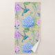 Ein schönes Badetuch-Set für jede Badezimmereinrichtung. Big Blue Hydrangea Blume mit Hummingvögeln, Libellen und Schmetterlingen.
