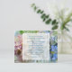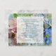 Mariage Hydrangea enregistrer la date carte postale avec écritures. Joli design floral avec des fleurs d'hydrangée rose, verte et bleue sur le devant avec vers de 1er Corinthiens. L'amour est patient, l'amour est gentil, en bleu, script à l'intérieur d'un panneau blanc avec des tourbillons aux coins. Des annonces abordables et jolies et mariages.