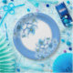 Party-Papierplatte in schöner Blauer Farbe mit hübschem Blue Hydrangeas-Druckdesign. Passen Sie diese Platte an oder kaufen Sie wie besetzt. Archivbild freepik.com