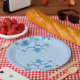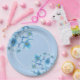 Party-Papierplatte in schöner Blauer Farbe mit hübschem Blue Hydrangeas-Druckdesign. Passen Sie diese Platte an oder kaufen Sie, wie es ist. Wir bieten auch passende Papierservietten an. Archivbild freepik.com