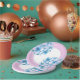 Papierplatte aus Party in warmer Orchideenfarbe mit hübschem Blue Hydrangeas Druckdesign. Passen Sie diese Platte an oder kaufen Sie wie besetzt. Archivbild freepik.com