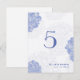 Cartes de numéro de tableau des hortensias artistiques. Les cartes postales (5,6 x 4,25 pouces ou 14,2 x 10,8 cm) sont décorées d'oeuvres originales de contours de fleurs d'hydrangée et de bleu ombragé. Customisez en ajoutant chaque numéro de tableau numérique individuel en bleu. Personnalisez en ajoutant les noms des mariés et des mariés et la date du mariage dans le coin.