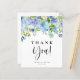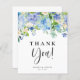 Envoyez un remerciement aux invités et aux clients avec cette carte de papeterie personnalisée. Il présente des hydrangées bleu et violet, des roses d'ivoire et de la verdure. Personnalisez ce carte de remerciements floral en ajoutant vos propres détails d'événement. Ce carte de remerciements d'hydrangée est parfait pour les mariages d'hiver et de printemps, les douches nuptiales, les baby showers et autres événements.