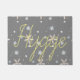 Whimsikaler "Hygge" Text in blassgelb mit Hintergrund von weißen, blauen und blasslila Blumen auf grauem Hintergrund.