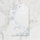 Ein einfaches und elegantes Schneeflockenmuster-Design und der Text Hyvää joulua, der frohe Weihnachten auf Finnisch ist, in echter Folie. Raum auf der Rückseite des Tags für Ihre eigene handgeschriebene Nachricht.