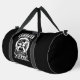 This black duffle bag features a bold declaration for skilled tradespeople: "I AM A CARPENTER I CAN'T FIX STUPID BUT I CAN FIX WHAT STUPID DOES." The design includes a hammer and wrench within a saw blade, making it a perfect humorous gift for any carpenter or builder. Edit color of the bag caps and body in the Design tool to your favored color