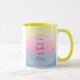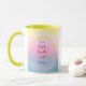 Pretty yellow, pink, and blue blends in a yellow and blue ring circle, with the affirmation, I am loved, loving, and lovable, is printed on custom mugs. The text can be customized on the template forms. The design is printed on both sides. Be sure to customize the text on both sides. Thank you for shopping at PositiveAffirmation on Zazzle.