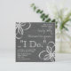 Ein modernes Hochzeitsdinner mit weißen Blume oben links und unten rechts über einem Kalkboard inspirierten Hintergrund. Passen Sie den weißen Text mit Details zu Ihrem Anlass an.
