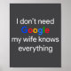 I Don't Need Google, My Wife Knows Everything Funn Poster