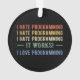 Design amusant, parfait pour toute personne qui est un programmeur, un spécialiste de la technologie, un codeur, un ingénieur informatique, un étudiant en informatique, ou quelqu'un qui aime coder! Je Déteste La Programmation. Ça marche ! I Love Programming'drôle de citation pour les programmeurs, les passionnés de technologie, les codeurs et les développeurs. Aimez-vous travailler dans le domaine de la technologie et faire partie de l'équipe technique? Accentuez votre style avec cet art cool ! Excellent cadeau pour un étudiant de l'informatique, un employé spécialiste de la technologie, un collègue de la technologie ou un professeur d'ingénierie informatique.