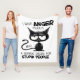 A humorous and sarcastic black-and-white graphic design showcases a black cat with a long tail and a grumpy expression. The bold black text reads, "I have anger issues and a serious dislike of stupid people." This design is available on various products, making perfect gifts for cat lovers.