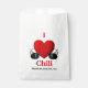 Schönes Design für den Chili Liebhaber. Ein Herz mit Chili Topf auf beiden Seiten mit blauem Band.