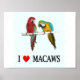 Ein grüner Flügel und eine blaue und goldene Rinde werden mit dem Text "I heart macaws" angezeigt