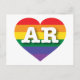 Auf dieser Postkarte finden Sie das Herz eines Regenbogenbruchs und die fetten, weißen Hauptstädte-Buchstaben AR, die offizielle Abkürzung für Arkansas, den natürlichen Staat. Zeigen Sie Ihre wahren Farben, unterstützen Sie die Gleichheit der Ehen und feiern Sie Gay Pride.