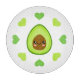 Niedlicher Avocado-Charakter umgeben von einem Ring von Lieben Herzen.