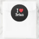 I Liebe Brian Herz Brauch personalisiert Runder Aufkleber