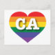 Auf dieser Postkarte befindet sich ein Regenbogenherz, überlagert von den fett-weißen Buchstaben CA, der offiziellen Abkürzung von Kalifornien, dem goldenen Staat. Die Rückseite der Karte ist leer und wartet auf Ihren personalisierten Text oder Ihre handgeschriebene Stimmung. Zeigen Sie Ihre wahren Farben, unterstützen Sie die Gleichheit der Ehen und feiern Sie Gay Pride.