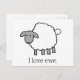 Diese Postkarte enthält ein wirklich niedliches Cartoon Schafe mit dem Text "I Liebe ewe". Ein lustiges und skurriles Geschenk für die eine "ewe" Liebe!