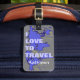 Ein cooles Typografie-Design "I LIEBE TO TRAVEL" mit einem Raum, um Ihren eigenen Namen, Telefonnummer und Adresse hinzuzufügen