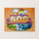Retro Hippieevangelium-Artpuzzlespiel. Stark im Gebrauch von Entwurf und Farbe. Dieses außergewöhnliche Puzzlespiel hat einen Vers über liebevollen Gott. Matthew-22:37 KJV "