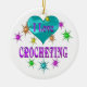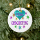 Teilen Sie Ihre Liebe für das Häkeln mit diesem glänzenden, bunten Entwurf mit einem blauen Herzen, Sternen und den Wörtern - i-Liebe-Häkeln.