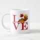 Wer Liebe nicht Herbst und die wunderschönen Herbstfarben, die Blätter ändern? Stackter Text-LIEBE mit dem "O" ersetzt durch eine farbige Sammlung von Fallmaples-Blätter in Rot, Gelb und Orange.