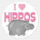 Niedlicher grauer Hippo mit dem Wort I Liebe Hippos in rosa mit einem rosa Herz geschrieben.