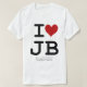Dieses Shirt hat ein "ich Logo der Liebe JB" zusammen mit 3 Webseiten