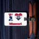 Leuke bagagelabel traf de tekst: i Liebe Missouri ( i heart Missouri) Het hart ist getroffen von vlag van de staat Missouri. Kleuren: blauw, rood en wit.