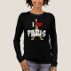 "I Liebe Paris", Eiffelturm, ein eigens entworfenes, dunkles Shirt mit weißer Schrift.